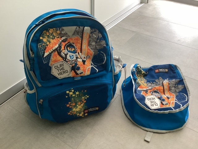 Predam skolsku tasku Lego. Vhodna pre 1.-3.rocnik. Velmi lahka. Nepremokavy material, jedno velke oddelenie, jedno male na peracnik, druhe male s termofoliou na desiatu, dve bocne vrecka na flasu. Vnutorne clenenie, plastove nozicky. Plus vrecko na prezuvky alebo telesnu, da sa pripojit na skolsku tasku.