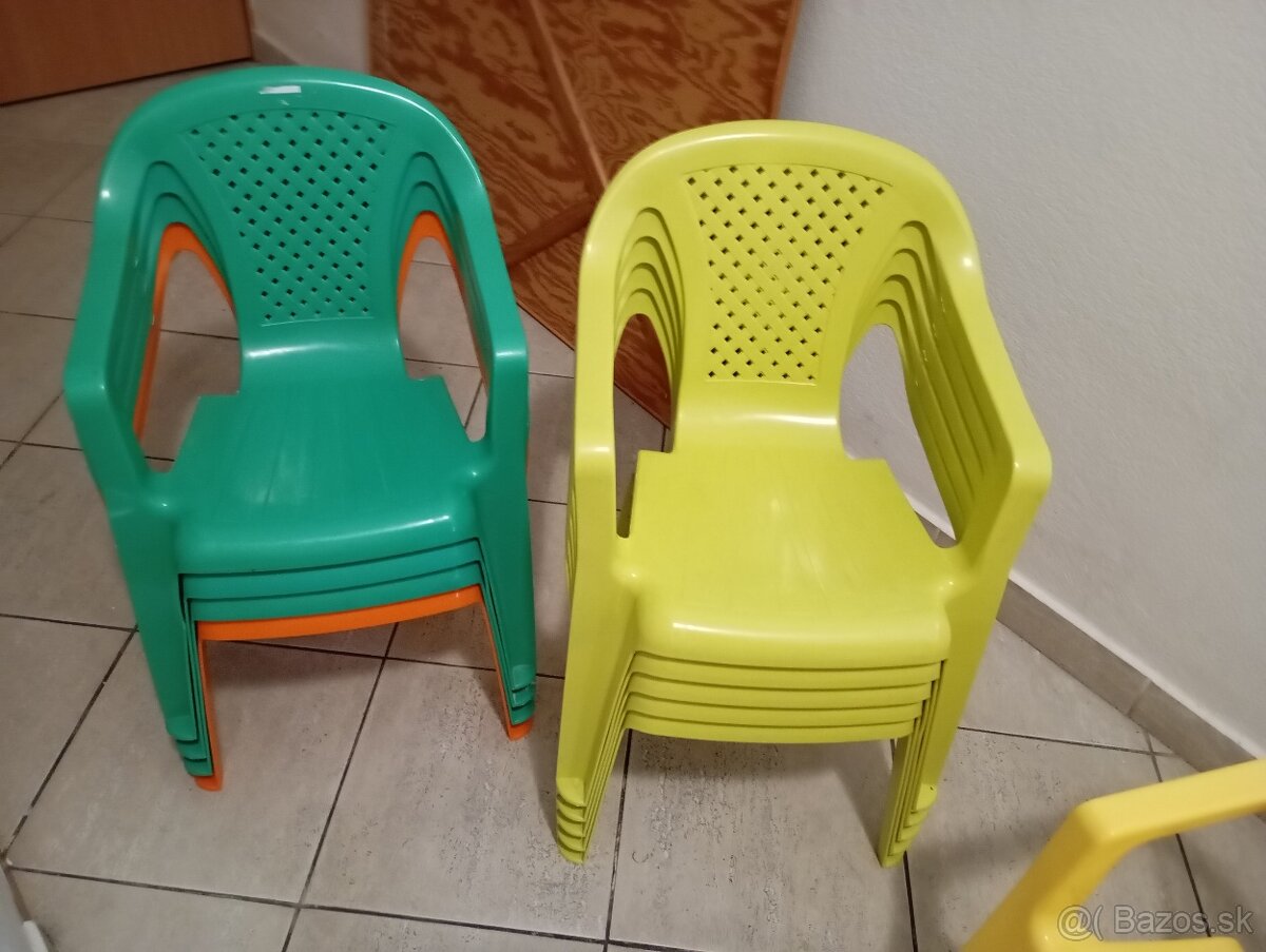 Detské stoličky. Cena za ks je 2.5eur. Vo farbe oranžová, zelena, svetlozelena