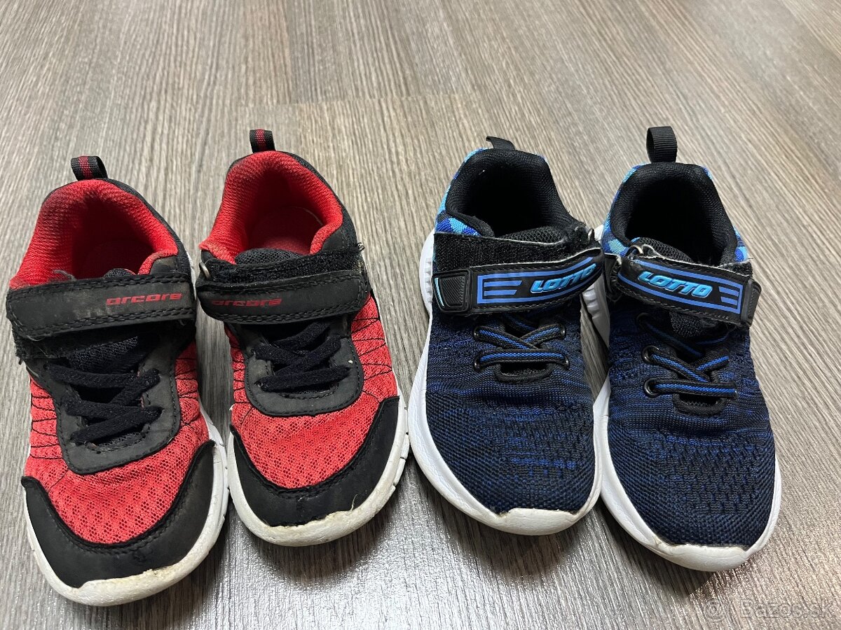 Tenisky značky Lotto,veľkosť 30. Modré sú nosené len do školky,sú v super stave,červené nosené okolo domu,ale v dobrom nosenom stave. Cena za 2ks 14€.