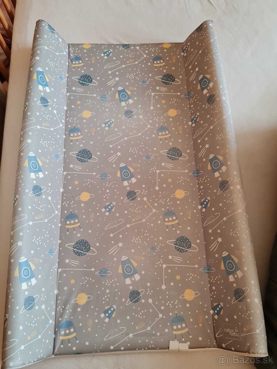 Predám pevnú prebaľovaciu podložku. Niekde je lepená. Má aj suchý zips. Široká 50 cm a dlhá 80 cm
