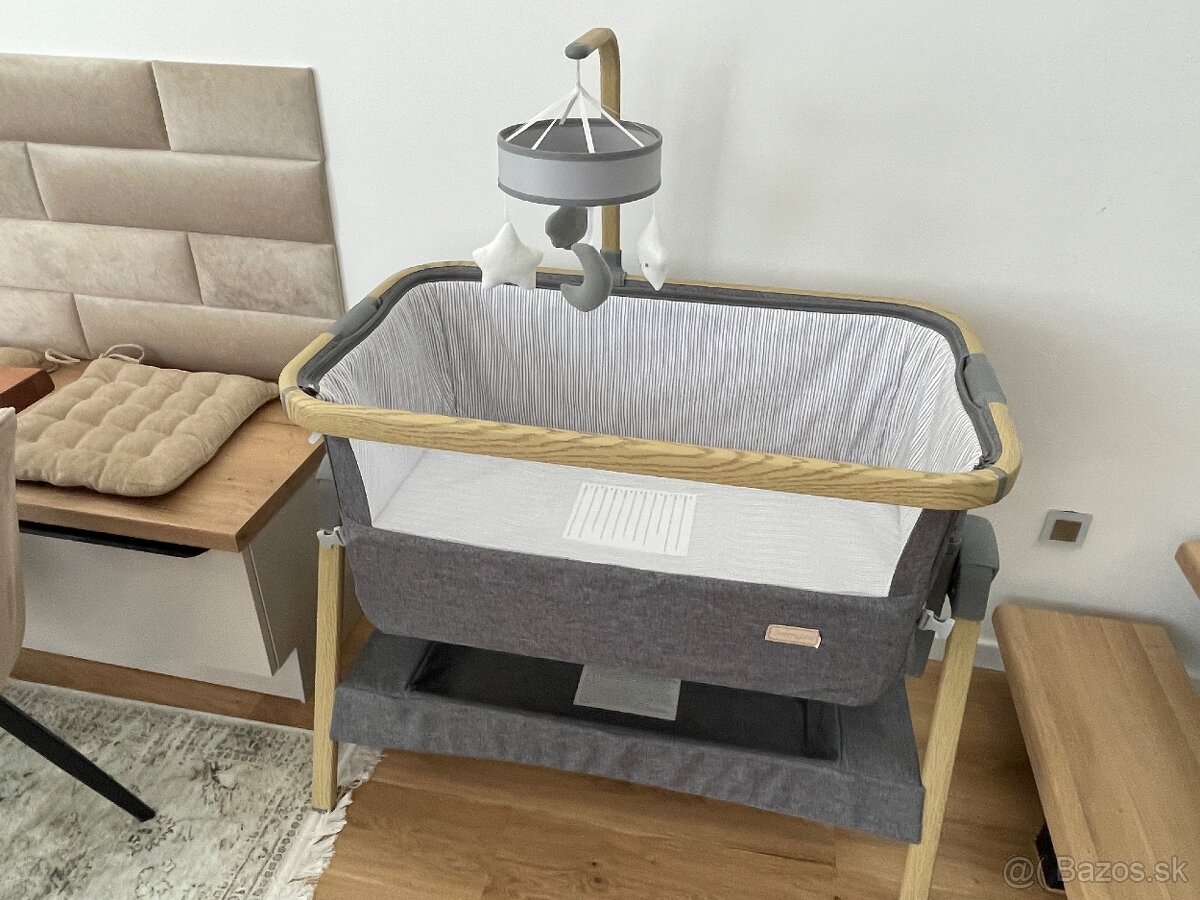 Detská postieľka JimmyLee - [14.2. 2026]Dá sa pripevniť k manželskej posteli ,ja som to nepoužívala postieľka má sedem výškových úrovni,bočnica sa dá odzipsovat pod postieľkou sa nachádza úložný priestor napr.na deky,plienky...Postieľka je s kolotocom.Pc.130€.Preferujem osobný odber nakoľko si už nepamätám veľmi ako ju zložiť
