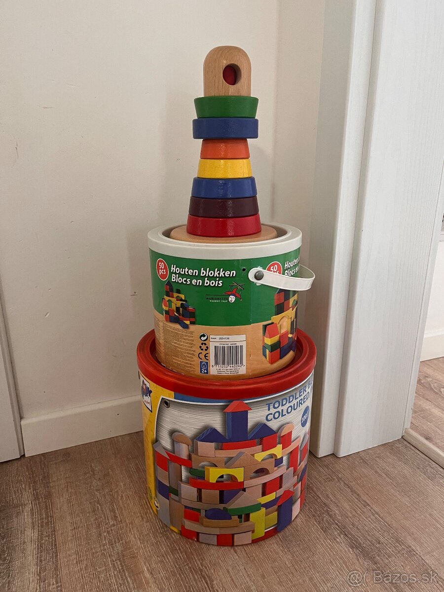 Drevené kocky - [19.2. 2026]kocky z prirodneho dreva pre najmensich, farebne aj ciste, 50 kusov v baleni (ani jedna nechyba), velmi malicko pouzivane mame kopec hraciek, povodna cena 25€ teraz 18€ s postovnym