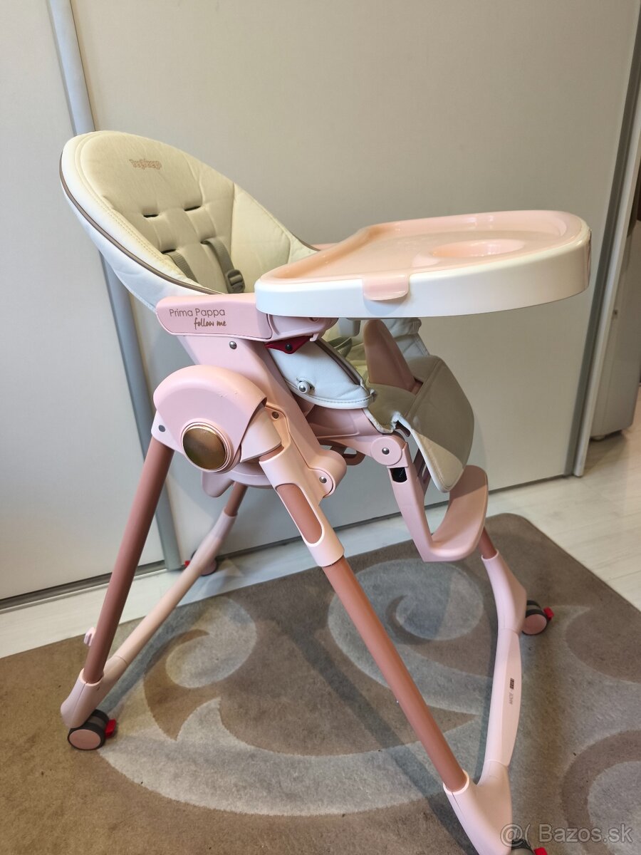 Predám jedálenskú stoličku Peg-Pérego Prima Pappa follow me, používaná pri jednom dieťati. Má škrabance a pár šmúh, poťah nie je popraskaný. Bez funkčných vád. Polohovateľný chrbátik aj nožičky, polohovanie výšky. Vrátane hrazdičky pre bábätko.