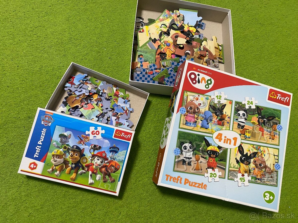 Puzzle Trefl Bing 4v1 + Tlapková patrola. Pôvodná cena 15€, teraz 5€(+poštovné). Uprednostňujem osobný odber.