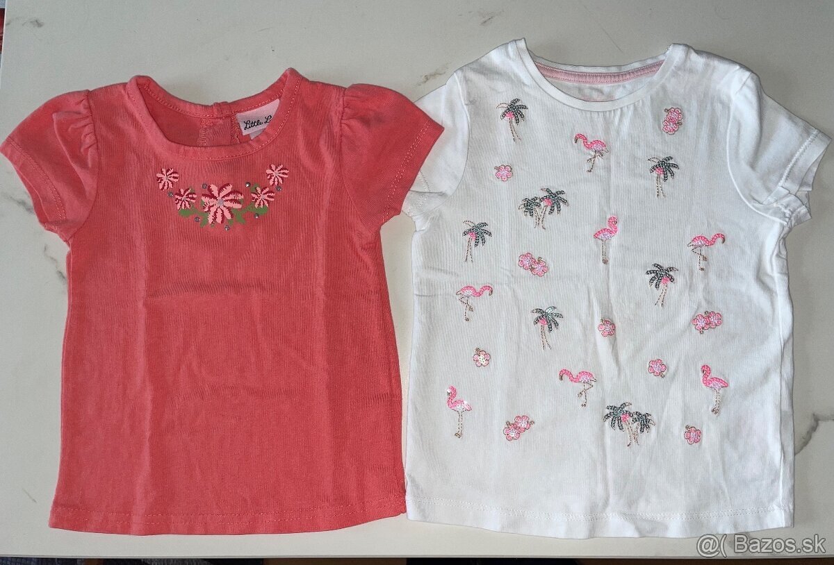 Predám dve krásne tričká zo 100% bavlny pre 18-24 mesačné dievčatko, snehobiele značky F&F a lososové značky Little Lass kupované v Amerike.