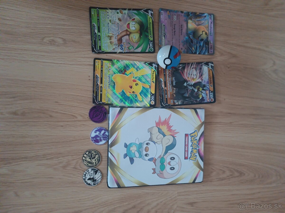 Predam pokemon album s kartickami, 4 velke karty, 4 zetony, pokemon gulicka