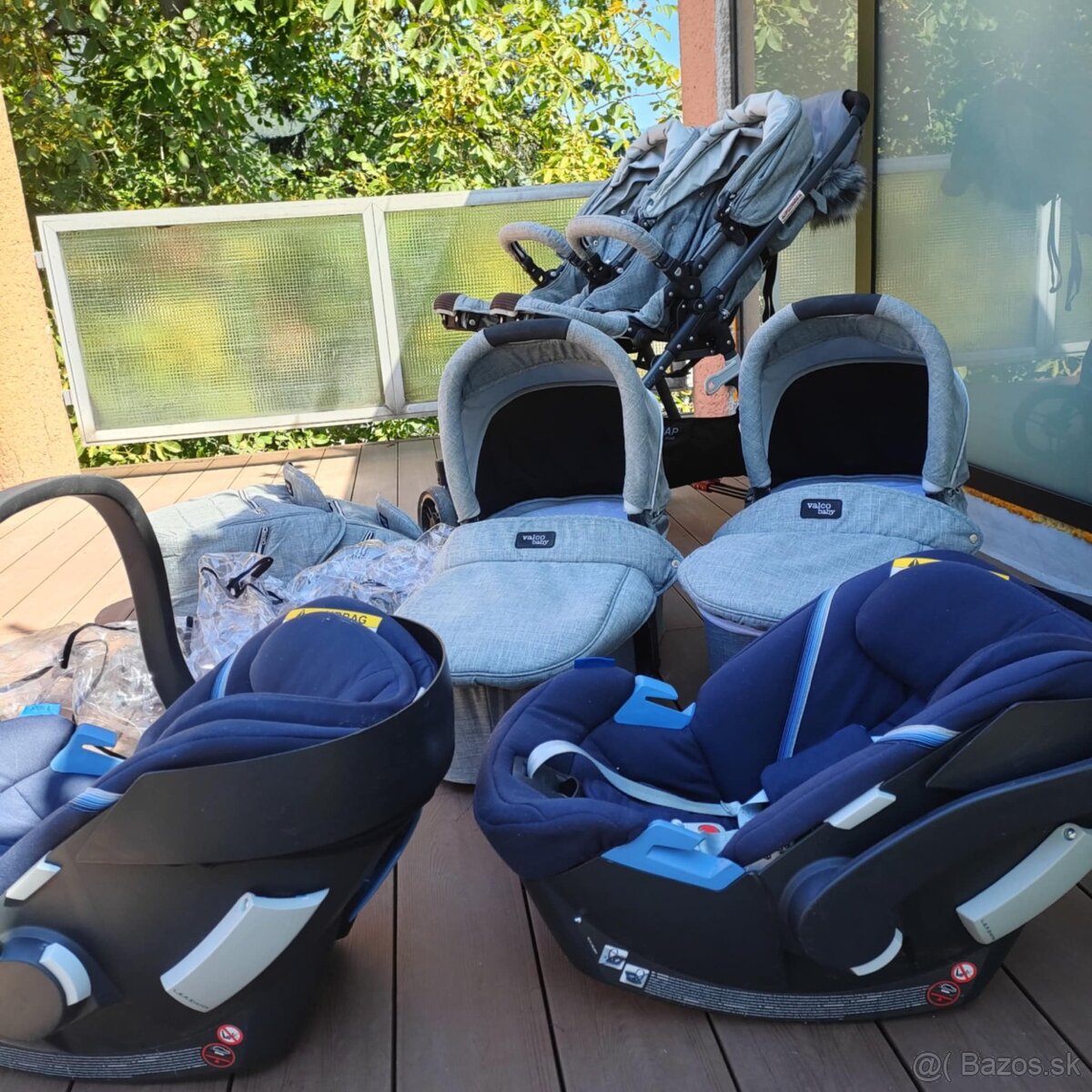 Trojkombinácia, hlboké vaničky, športová časť aj vajíčka s nadstavcami. Pripájam pláštenku do dažďa. Cena za všetko 350e.
