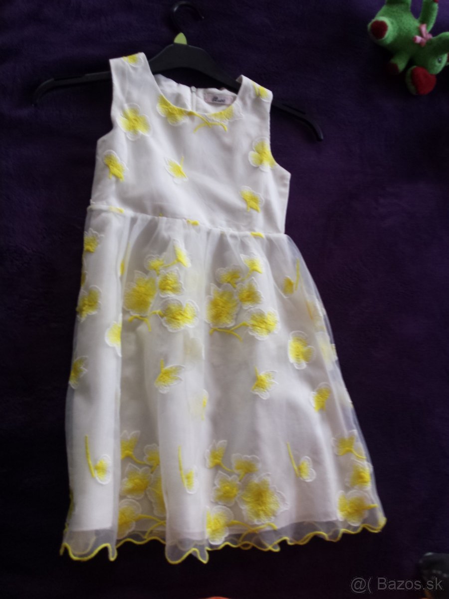 Predám spoločenské šatky pre 5 - 6 ročné dievčatko raz použité na svadbu. Na výsačke je veľkosť 12 rokov, ale moja ich nosila na 6. Nepoškodené predaj osobne Košice okolie poštou len PLATBA VOPRED cez IB vrátane poštovného. Cena 15 EUR Volať 0948 132 552