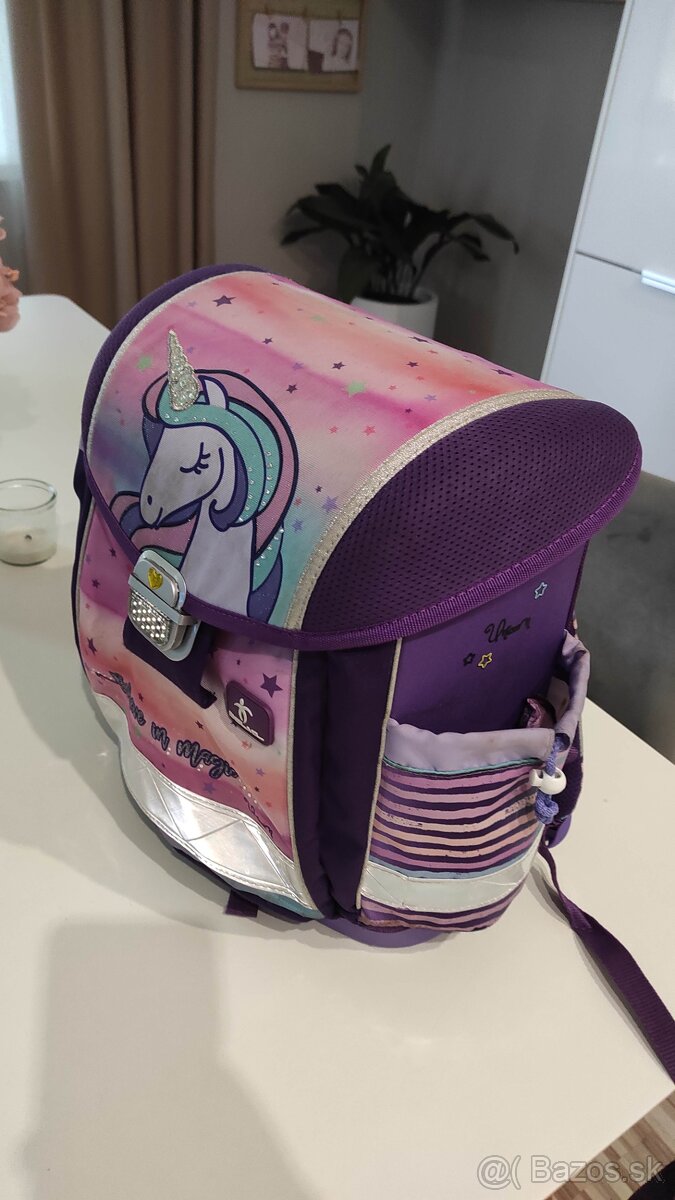 predame skolsku tasku zn. Belmil, velmi dobry stav, urcena pre vek 6-8 rokov, dievcenska, motiv jednorozec, rozmery 36x28x19 cm