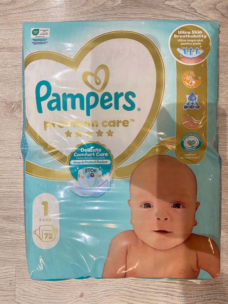 Pampers Premium care 1 - [24.2. 2026]Pampers Premium care 1, ostalo nám neotvorene balenie 52 kusov, a 15 kusov iných plienok k tomu, možný osobný odber Ba Ruzinov