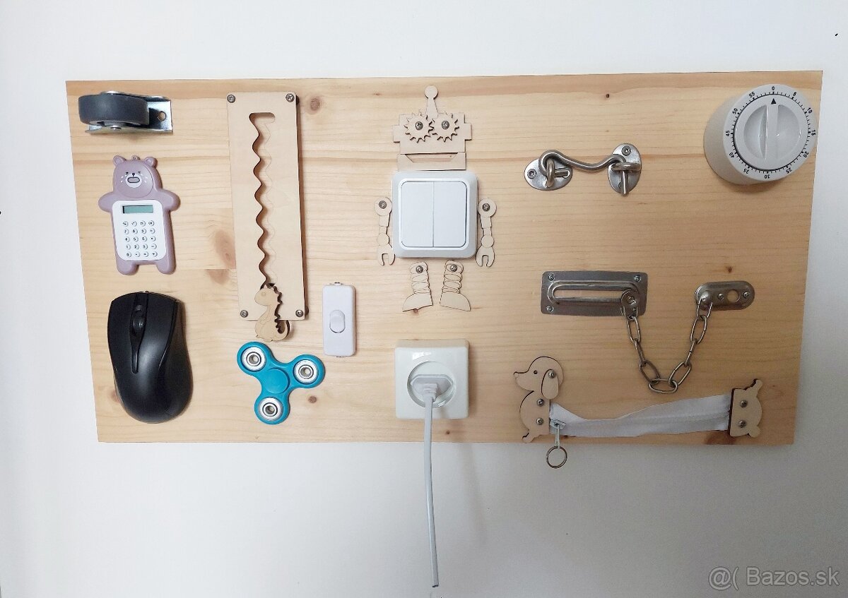 Predám drevenú montessori hraciu dosku-activity board. Ako nová. Syn sa s ňou hral možno raz.