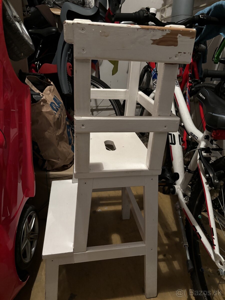 Uciaca veza - [1.3. 2026]Uciaca vez (kitchen helper / Montessori): Stabilna drevena veza do kuchyne, dieta je pri linke v bezpecnej vyske. Je ok, ale ak dostane novy nater, bude ako nova (tie biele dosky sa daju odobrat, boli pridane kvoli extra bezpecnosti).