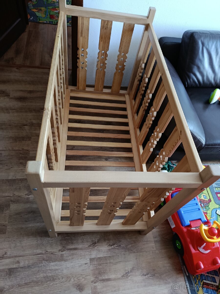 Predám kvalitnú, používanú detskú postieľku z bukového dreva. Je veľmi pevná. Rošt sa dá dať aj vyššie. Postieľka je bez matraca.