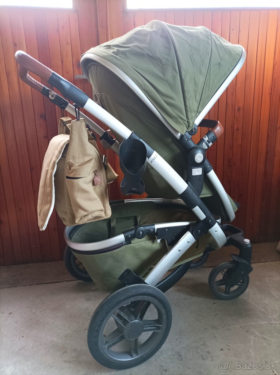 Predám terénny kočík Joolz geo s príslušenstvom: letné sedátko, prebaľovacia taška, slnečná clona a držiak na pohár. Zadné kolesá sú nafukovacie a košík je odnímateľný s nosnosťou 10kg, čiže vhodný aj na nákupy. Samozrejme, kočík má aj klasické sedátko. Prebaľovacia taška je tiež veľmi veľká ako košík pod kočíkom. Taška má rôzne priehradky a dá sa pekne zavesiť na madlo. Kočík má bežné známky používania (viď. fotky) a malú trhlinku na strieške, ktorá je zašitá.