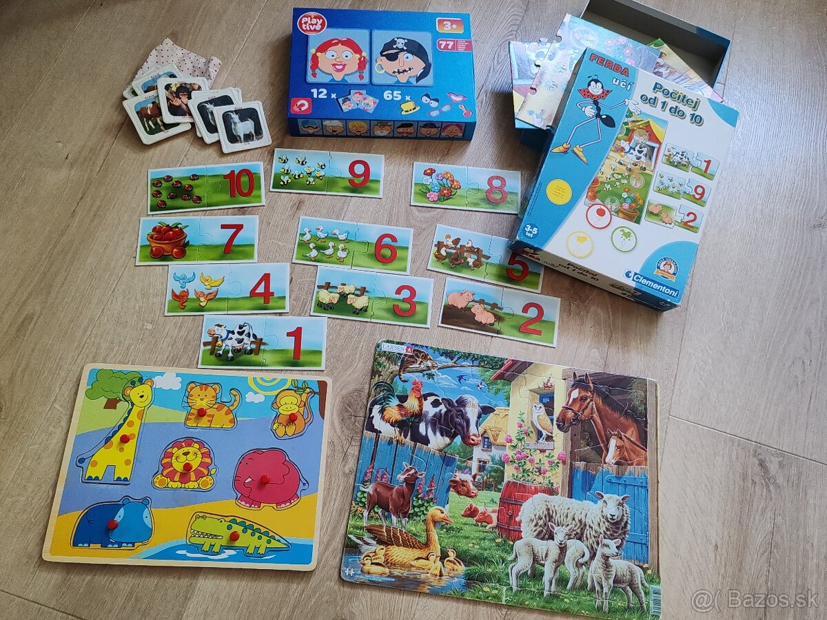 Predam rozne hry - puzzle 2x zvieratka (jedny drevene vkladacie), pexeso, hra na ucenie cisel a hra tváre. Cena spolu