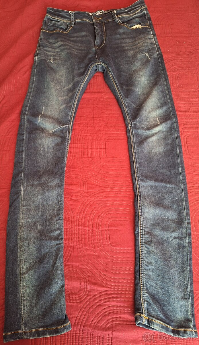 Predám použité, málo nosené, skoro ako nové chlapčenské rifle slim zn. Urban Surface veľkosť č. W33, obvod pásu 78-84cm, dĺžka od pása po spodok nohavíc 110 cm za sumu 5 €.