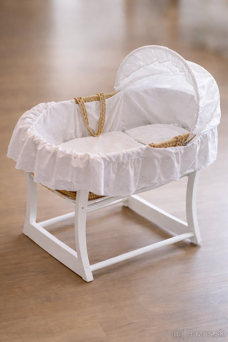 Predám tento mojžišov kôš s podstavcom na kolísanie, kôš je plne funkčný, len madlá sú už trochu opotrebované, značka clair de lune. Predám za 5€ alebo za veľkú čokoládu Milka Oreo. Len osobný odber Plavé Vozokany.