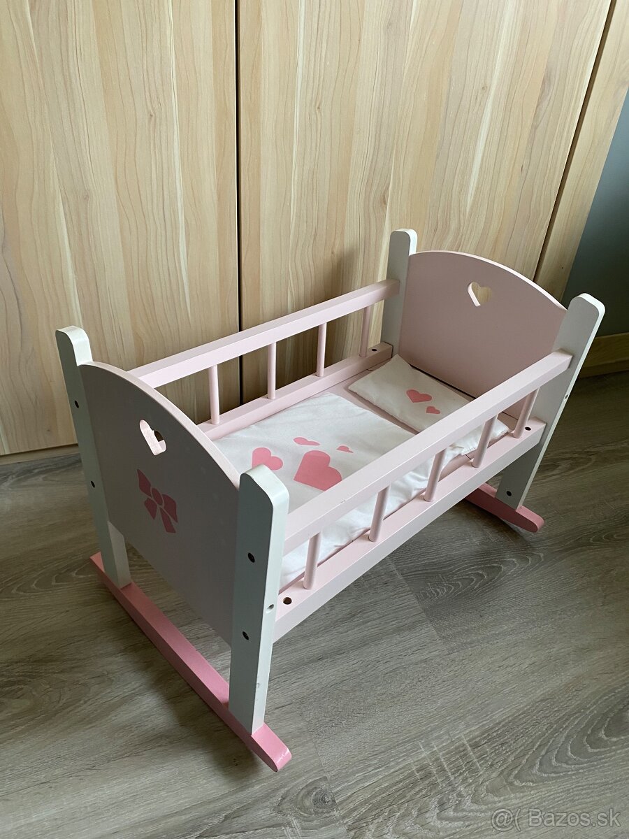 Drevená kolíska pre bábiku - [1.2. 2026]Predám drevenú kolísku s perinkou a vankúšom pre bábiku.S malou chybičkou pod perinkou.Dcérka popísala fixkou.Inak pekný stav.