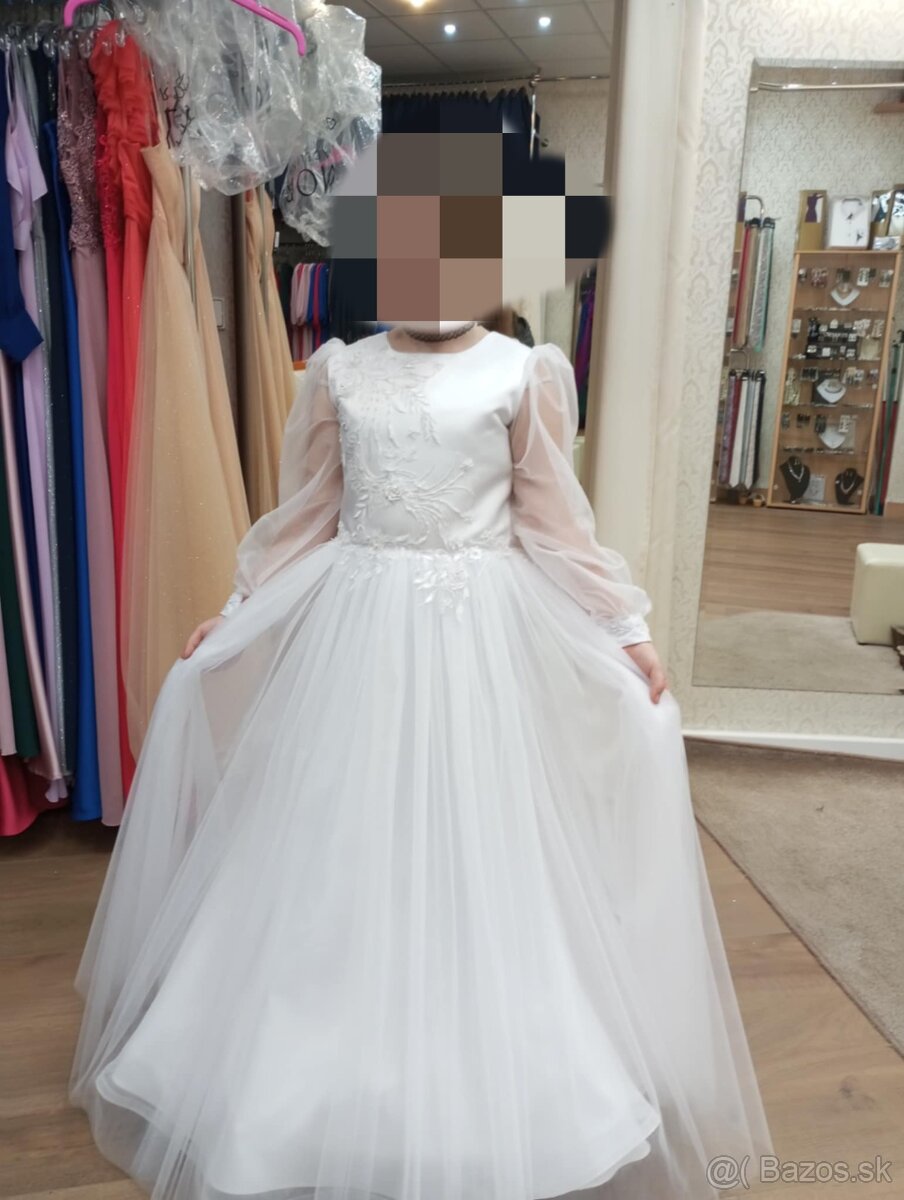Šaty na 1.sv. prijímanie - [22.2. 2026]Oblečené raz, v skvelom stave. Šaty na dĺžku majú 122cm, na šírku 36.