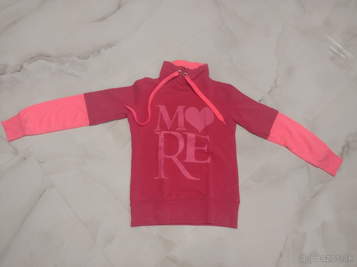 Predám zachovalú mikinu s kapucňou pre 14-15 ročné dievča v ružovo červenej farbe. Dĺžka mikiny je 73cm, rukáva 64cm. Cena 3,50 € + poštovné. Pozri aj ďalšie moje inzeráty.