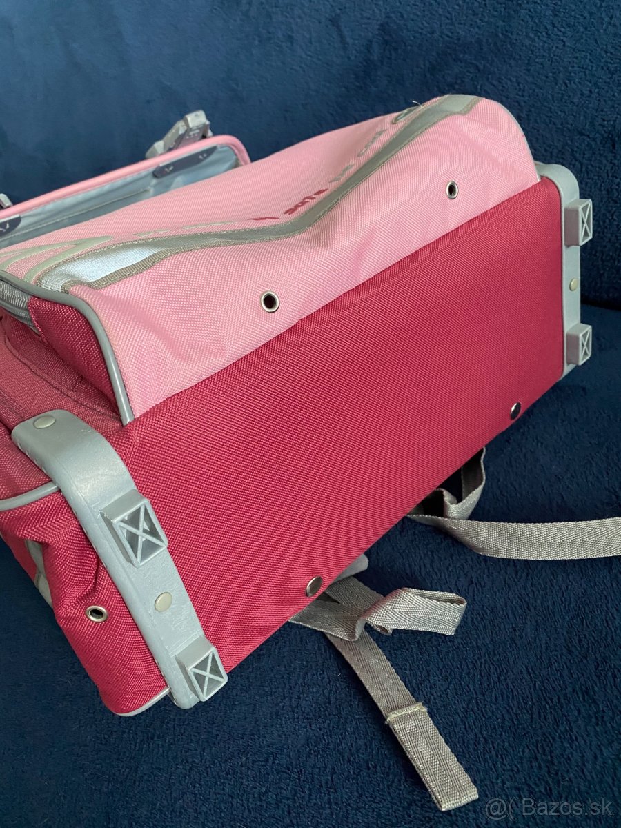 tašku sme mali len ako záložnú, bola použitá 2 krát no stav zodpovedá novej čo možno vidieť i na foto zo spodu tašky a na zapínaní.chrbát je vystužený, taška je veľmi lahunká 1,2kg. Kupovaná v zahraničí