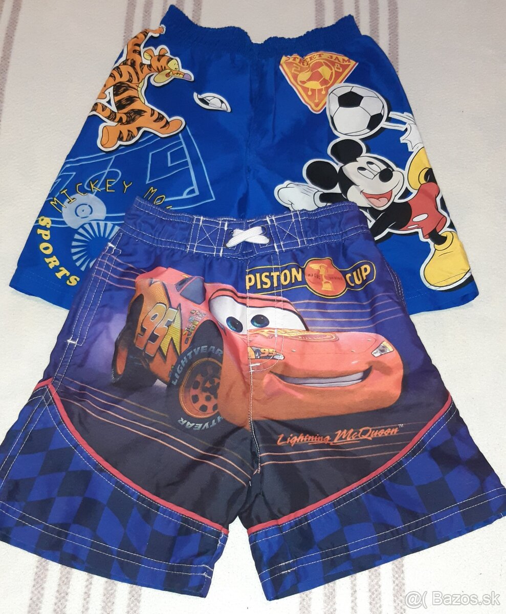 Predám 2ks plaviek velk. 98/104, Mickey Mouse, Cars. Cena spolu 3€. Predám aj po kuse.
