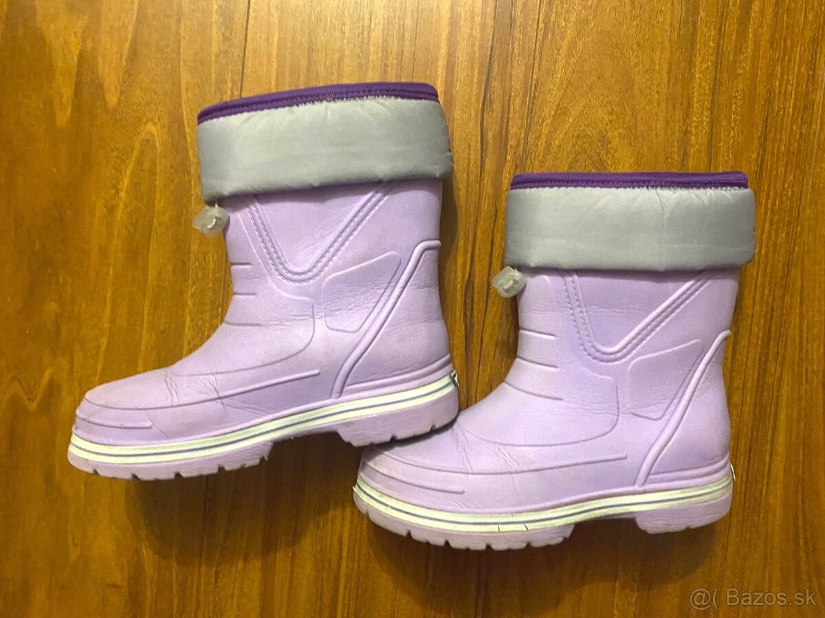 Zateplené (vnútri je príjemná kožišinka) gumáky veľ. 35-36, vonkajšia dĺžka chodidla 25 cm, výška 22 cm. Gumáky sú odľahčené, príjemné na nosenie.