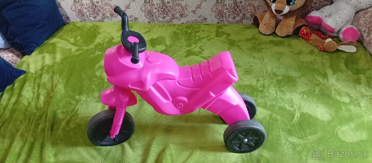 Odrážadlo ružovej farby, je veľmi ľahké a stabilné, a je v dobrom stave