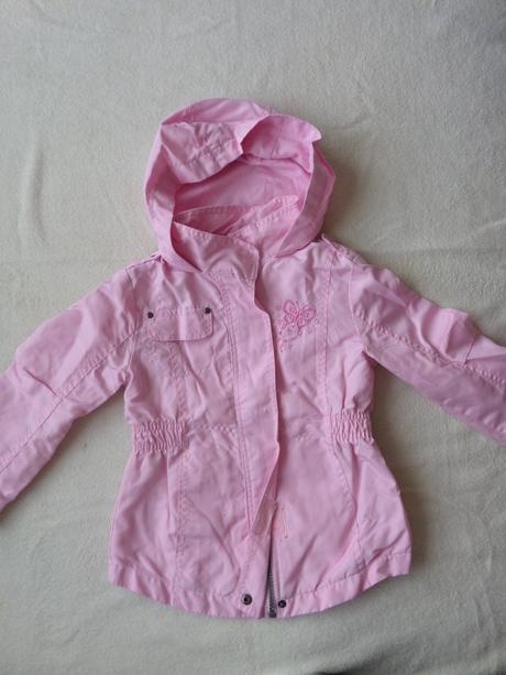 Dievčenská prechodová bunda, nosená v dobrom stave, vpredu na lege fľak, veľ. 110, zn. Okay.