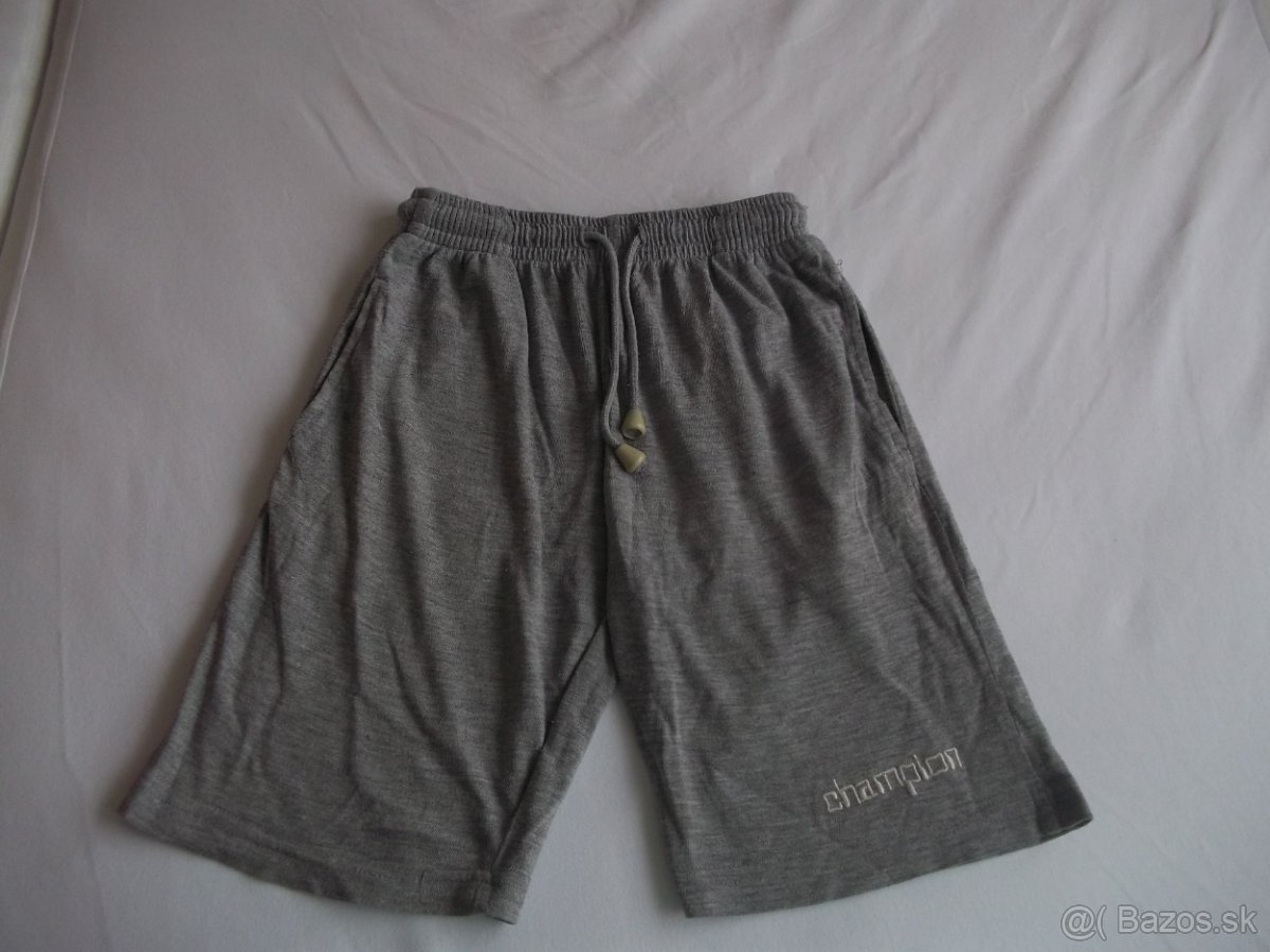 Predám nosené krátke nohavice na gumičku. Nohavice majú 2 vrecká vpredu. Žmolky. Bez poškodenia. Zloženie: 100% bavlna. Značka: Kwella Bratislava. Motív: nápís na ľavej nohavice champion. Farba: šedá. Veľkosť: 128.