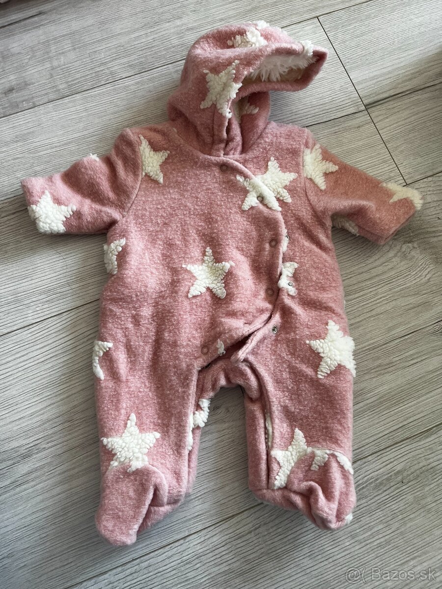 Predám ružový zateplený overal s bielymi hviezdičkami značky Next, veľkosť: 56