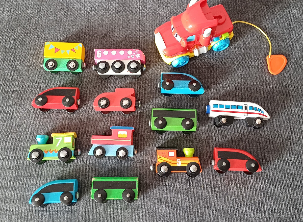Predám drevené vláčiky, rôzne veľkosti, spolu 13ks.
