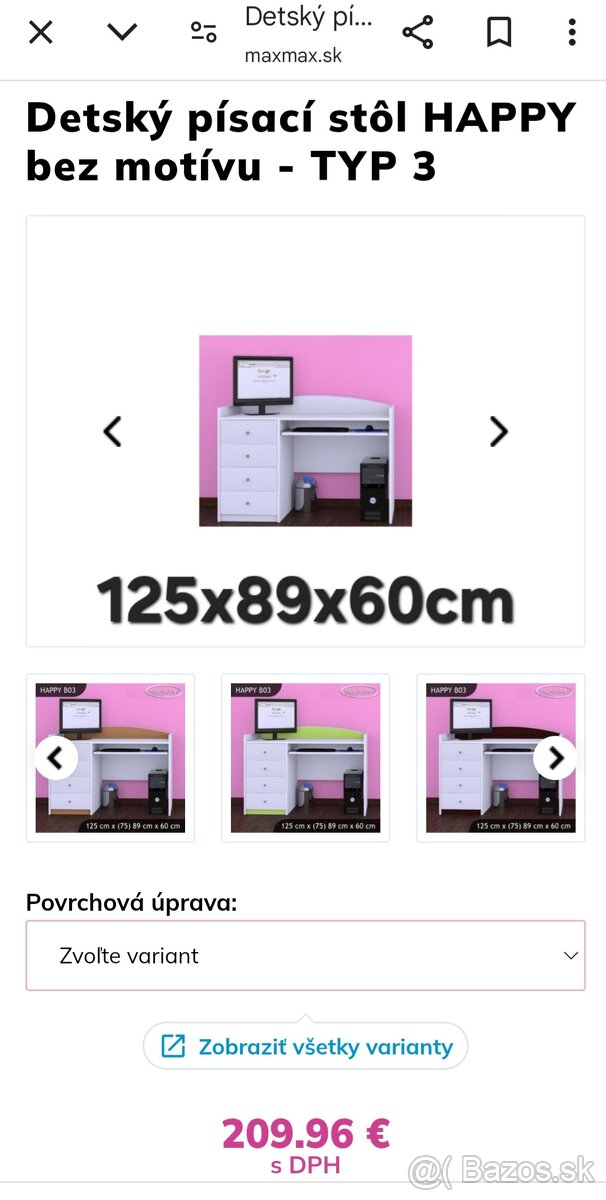Detská izba pre dievča aj chlapca - [19.2. 2026]Predám krásnu a zachovalu detskú izbu. V ponuke písací stôl rohový s posuvným kontajnerom so šuflíkmi, polička nad stolík veľká aj malá dosková, úzka skrinka aj veľká skriňa. Spolu 200 eur. Pri rýchlom jednaní tri obrázky Macko Pu a lampička na stolík zdarma.