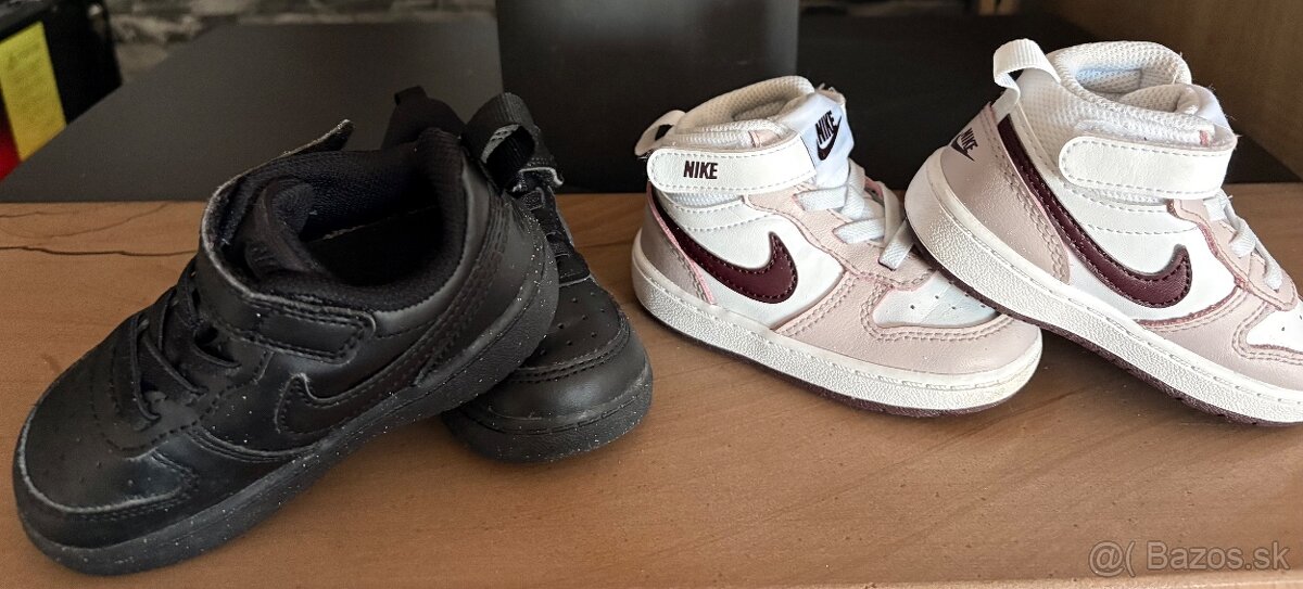 Predam veľmi malo nosene botasky po dcérke značka Nike Veľkosť ružové 21 vnútorná dĺžka 11cm Veľkosť cierne 22 vnútorná dĺžka 12cm sú úplne ako nove neroztrhane neočuchane.Cena spolu za obe 35€