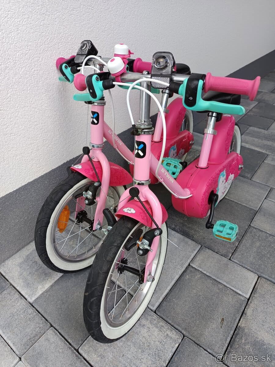 Predám 2ks BTWIN 14-palcový bicykel pre deti od 3 do 4,5 roka 500 jednorožec. Bicykle sú vo veľmi dobrom stave, ako nové. Ku bicyklom sú aj pomocné kolieska