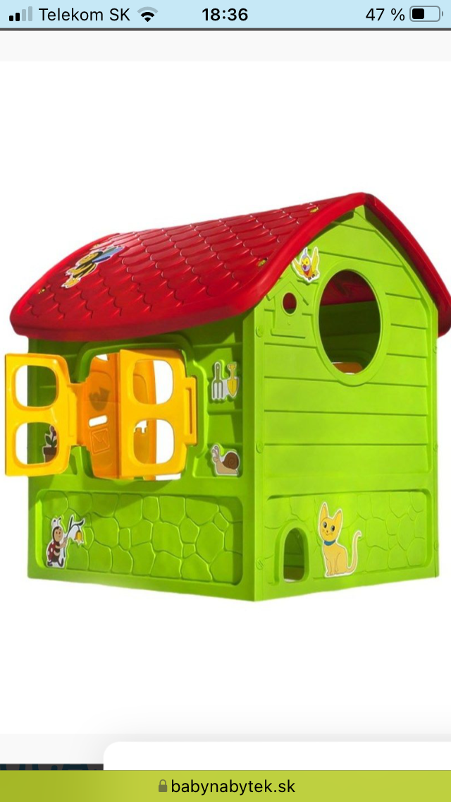 Predám len v detskej izbe používaný domček. Pri jednej okenici je prasknutý, inak v super stave, nevyblednutý. Len osobný odber.