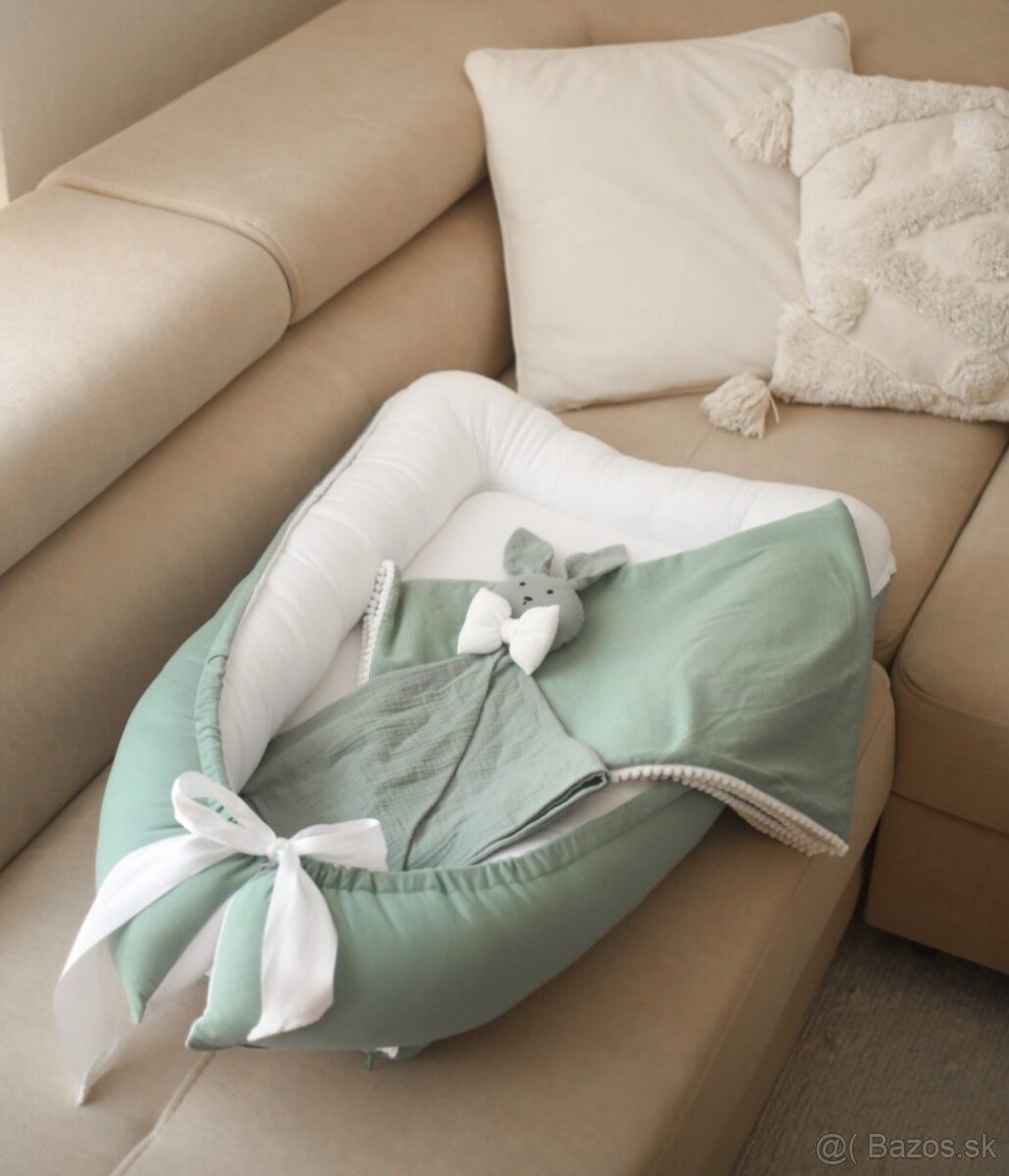 Na predaj bavlnené hniezdo so stuhou. Mintovo-biela farba. Top stav. Kúpené za 79,90€. Predávam za 40€. Pre viac info DM. Pri vážnom záujme dohoda možná. Preferujem kontakt mailom.