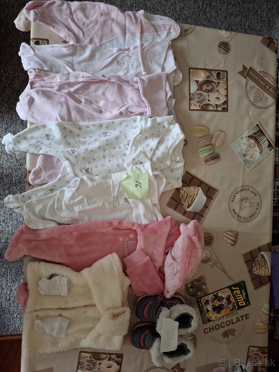 Dievcenske oblecenie 1-3m ako nove - [24.2. 2026]Posuniem 20ks dievcenskeho detskeho oblecenia 1-3 mesiace. Vsetky kusy max 2-3x nosene, su uplne ako nove. 12x body s kratkym rukavom, 1x set body s dlhym rukavom & dupacky, 1x tristvrtaky, 1x suknicka, 1x saty 3x pyzamo.