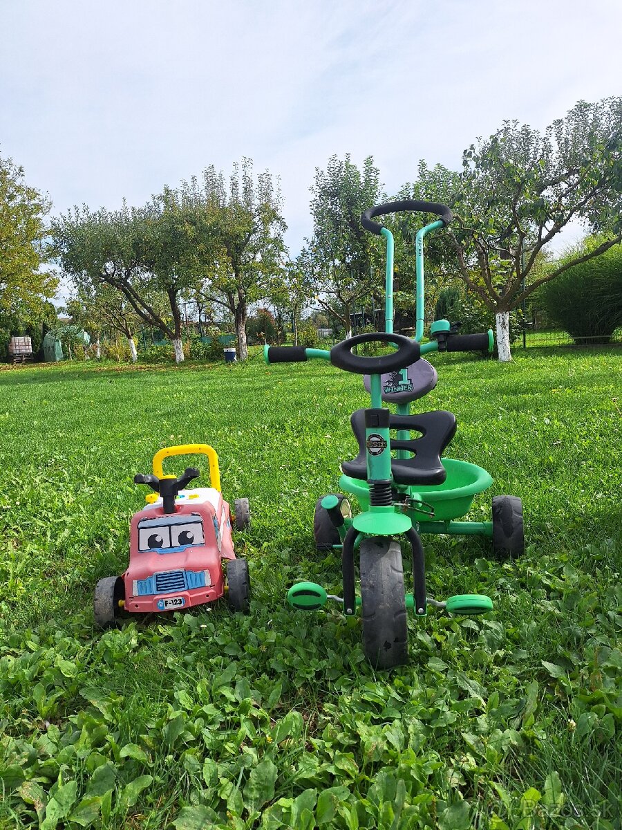 -zelené odrážadlo (trojkolka)2v1 s rúčkou na tlačenie, vhodné od cca 1,5 roka