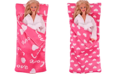 Spací vak ružovej farby v dvoch prevedeniach a župan bielo ružovej farby pre bábiku Barbie, mäkký a príjemný materiál, možné prať v pračke na 30*C, rozmer 35x13, poduška 5cm, dá sa zložiť ako spací vak. Cena za kus.
