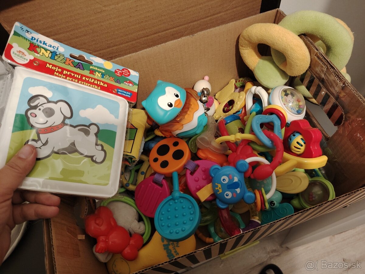 Hracky pre babatko - [28.2. 2026]Predam krasne hracky pre najmensich. Vsetko bud hrka alebo piska. A babatko si ich vie dobre chytit do ruciciek. Su tam aj knizky pre najmensich aj 2 mojkaci - macikovia. Niektore hrkalky sa daju pouzivat ako hrizatko. Plus v pripade zaujmu pridavam aj penovu pismenkovu podlozku. Cena za vsetko spol ...