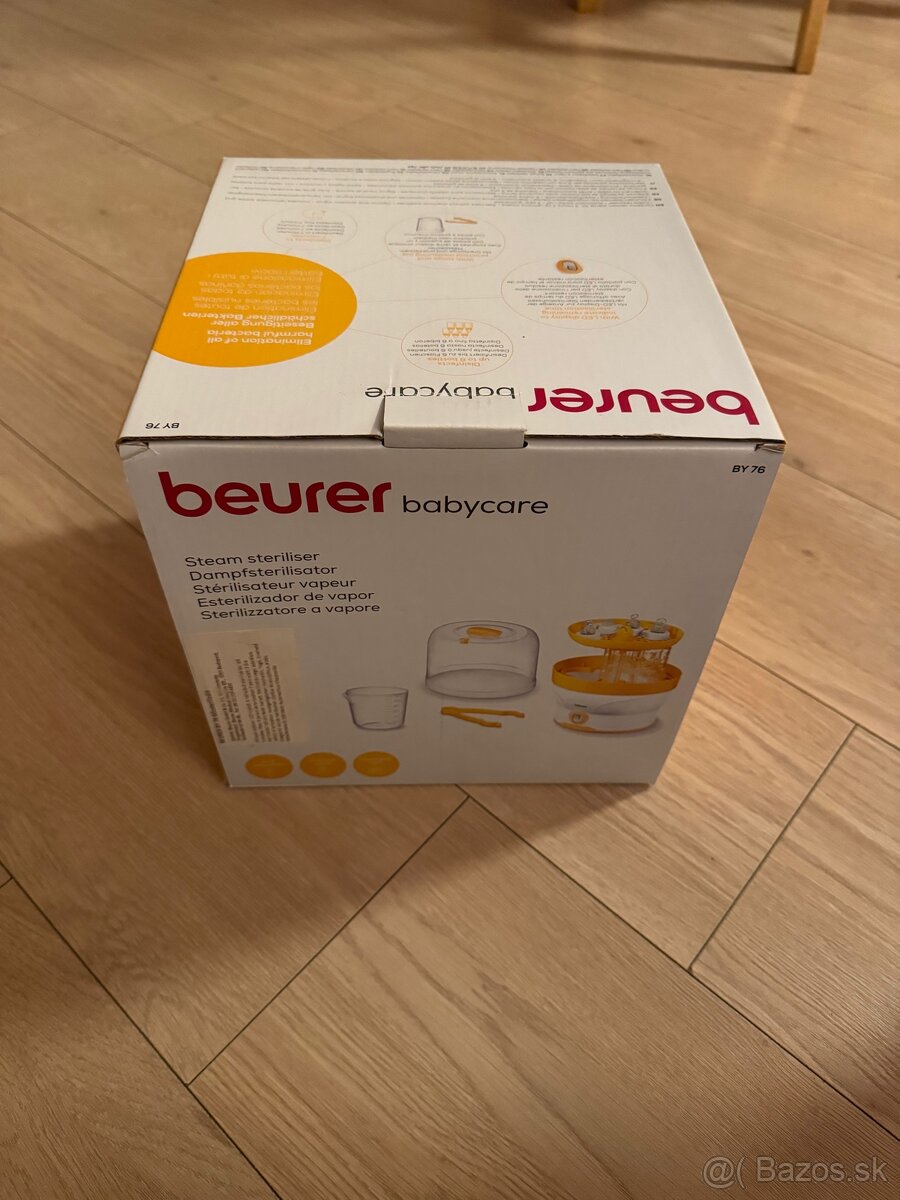 Predám digitálny parný sterilizátor dojčenských fliaš značky Beurer BY 76. Je vo veľmi dobrom stave, plne funkčný a spoľahlivý. Sterilizácia parou je rýchla (7 minút) a prebieha bez akýchkoľvek chemikálií.