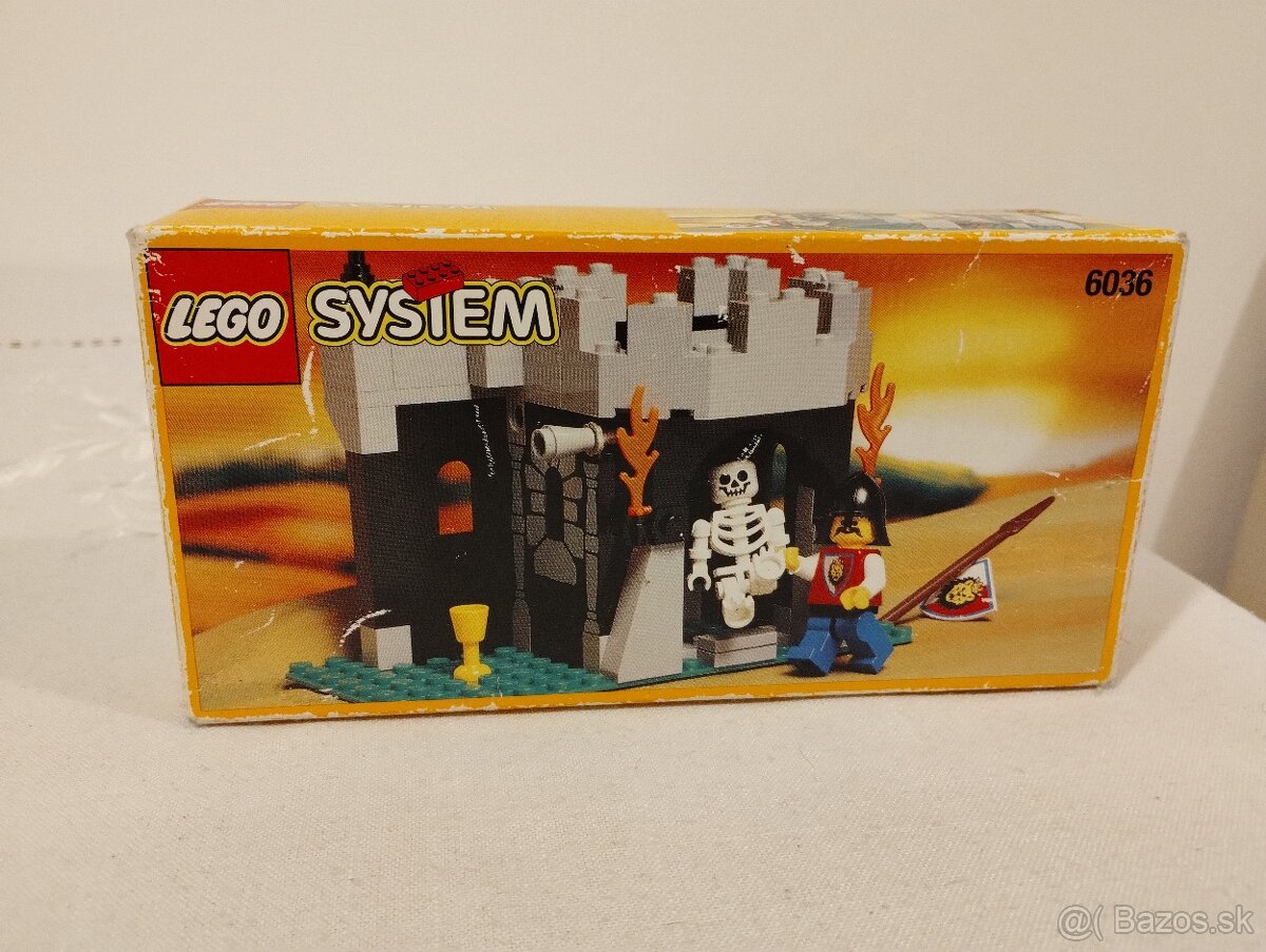 kompletné LEGO 6036 Skeleton Surprise z kolekcie Castle Royal Knights z roku 1995, s originálnou krabicou a návodom, kocky bez poškodenia, unikátna figúrka CAS064 použitá výlučne v tomto jedinom sete. stavebnica bez zápachu, z nefajčiarskej domácnosti bez domácich miláčikov