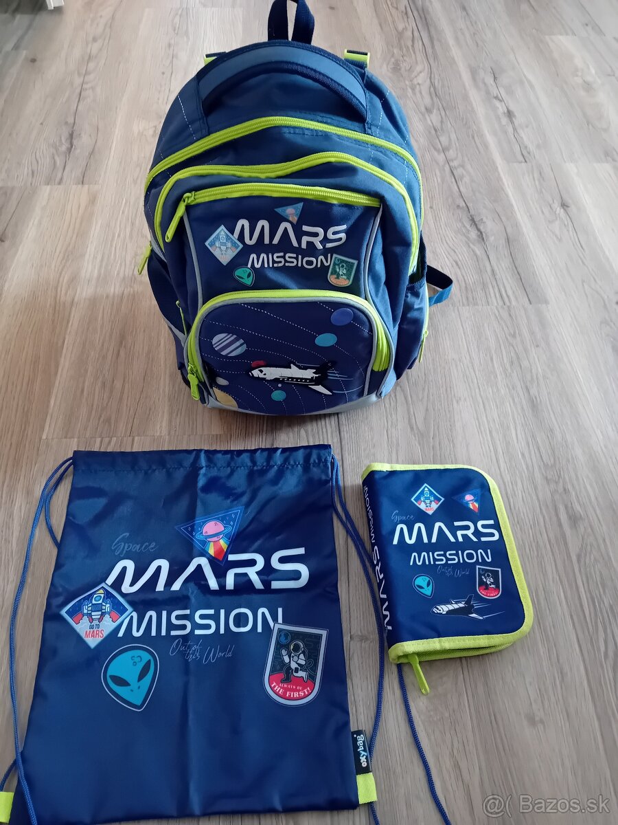 Predám chlapčenskú školskú tašku s peračníkom a vreckom na topánky. Sú čisté, majú známky používania (viď foto). Vrecko nebolo používané. Vhodné pre 1. až 4. ročník ZŠ.