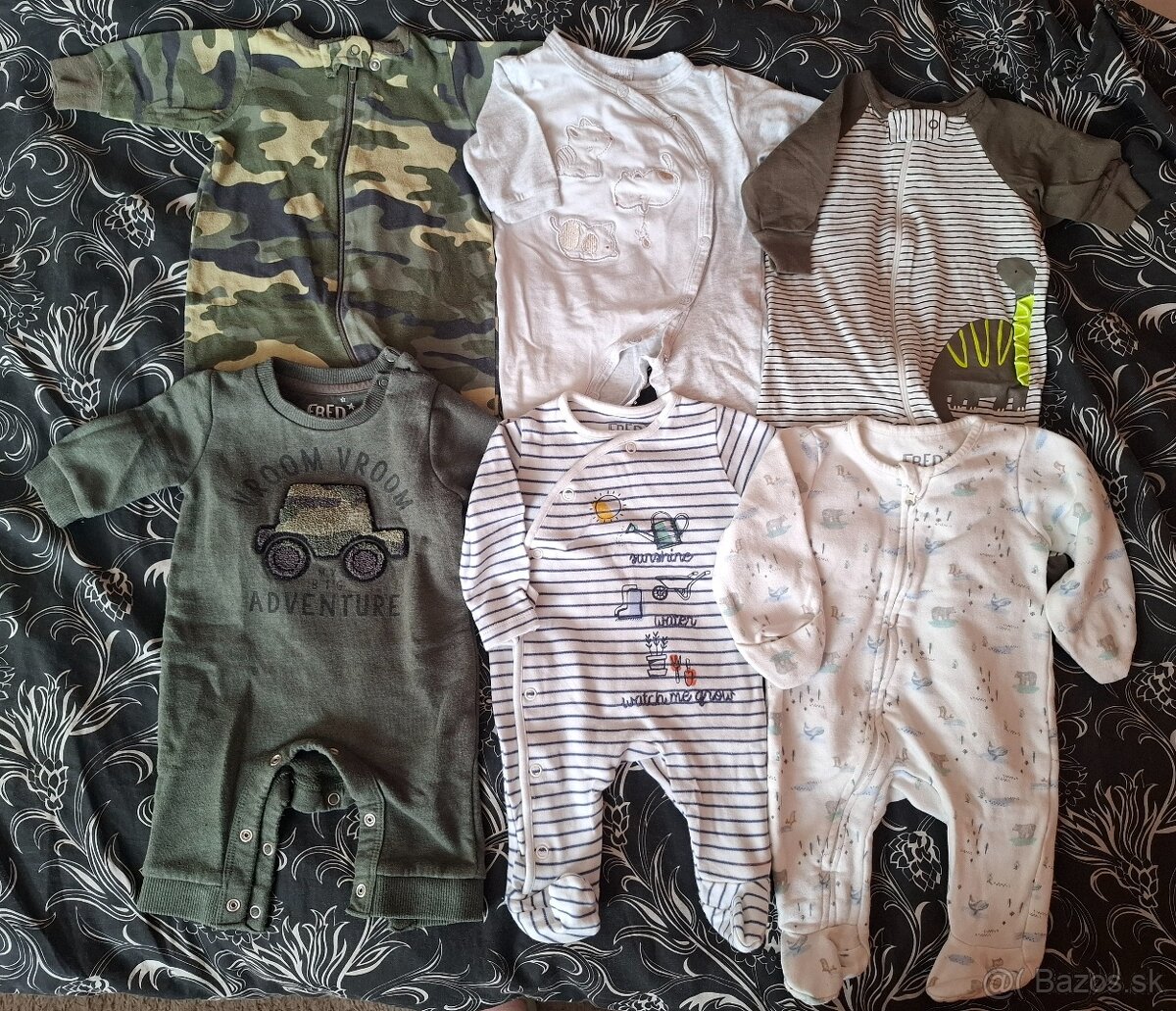 Detské oblečenie chlapec v.56 - [27.2. 2026]1x body, 3x overal,1 x plyš.nohavice- tepláky,1x čapica. Vel.56.