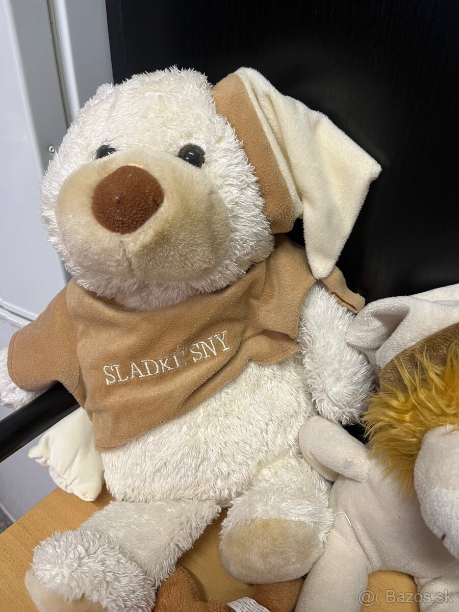 Predám plyšové hračky podľa foto. Všetky sú čisté, voňavé, bez poškodení. Veľký macko “Sladké sny” je cca 40cm vysoký, s vankušikom, veľmi pekny(cena je 15 €. Väčší sobik je za 5 €, menší sobik za 3 €, malý ležiaci s vianočnom čiapkou je za 3€, dá sa zavesiť, ostatné hračky sú po 4 €. V okolí do 20 km od NZ doručíme.