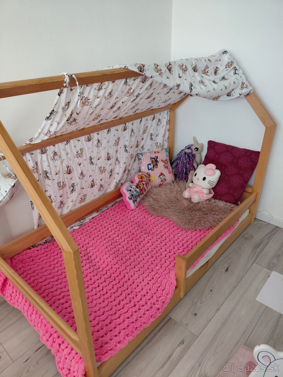 Predám detskú Montessori posteľ v tvare domčeka.Aj s baldachynom, roštom a matracom.Iba osobný odber Jacovce. Rozmer 160×90 cm.