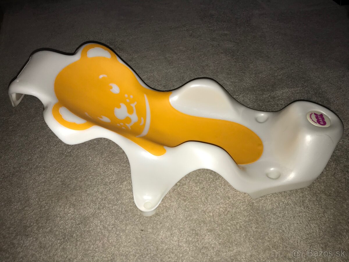 Ležadlo je použité ale bez poškodení, je ako nové. Tvarovanie ležadla do vane zaistí dieťaťu správne držanie tela, má protišmykový povrch, prísavky na spodnej časti, sklon ležadla prispeje k pohodlnému umývaniu dieťaťa.
