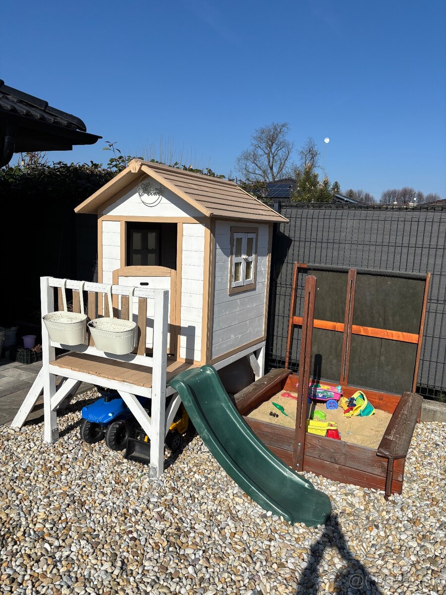 Detský záhradný domček. - [9.2. 2026]Záhradný detsky domček si smykalou a pieskoviskom.Domcek stal ako novy 1100€