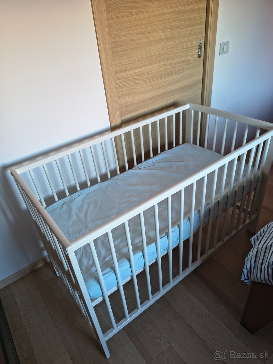 Predám málo používanú postieľku IKEA 60x120 CM a nový nepoužívaný matrac Petite Mars kupovaný 7/2025 vo Feedo.